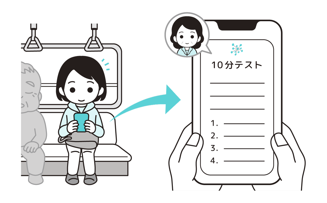毎朝6時に「10分テスト」や「オリジナルテスト」を学生のメール・LINEに配信しました。授業や実習で疲れている夕方を避け、頭のすっきりしている朝の登校時間を活用するとよいと考えたためです。
