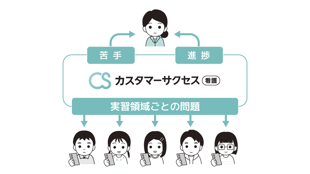 2年生には「解いたことがない問題が多いかもしれないけど、年間を通してやってみよう」と働きかけました。ほかには、長期休暇中に学力のふるわない学生たちに登校してもらって、CS看護を活用して学習する、というように使わせてもらいました。